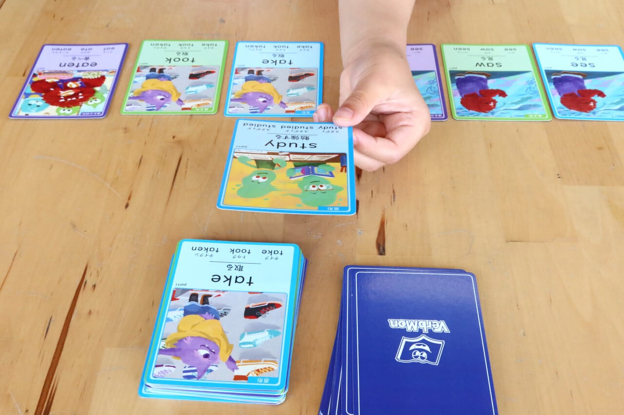 同じ動詞の『原形』『過去形』『過去分詞形』の3枚のカードを集めると1組の『活用セット』が完成!
