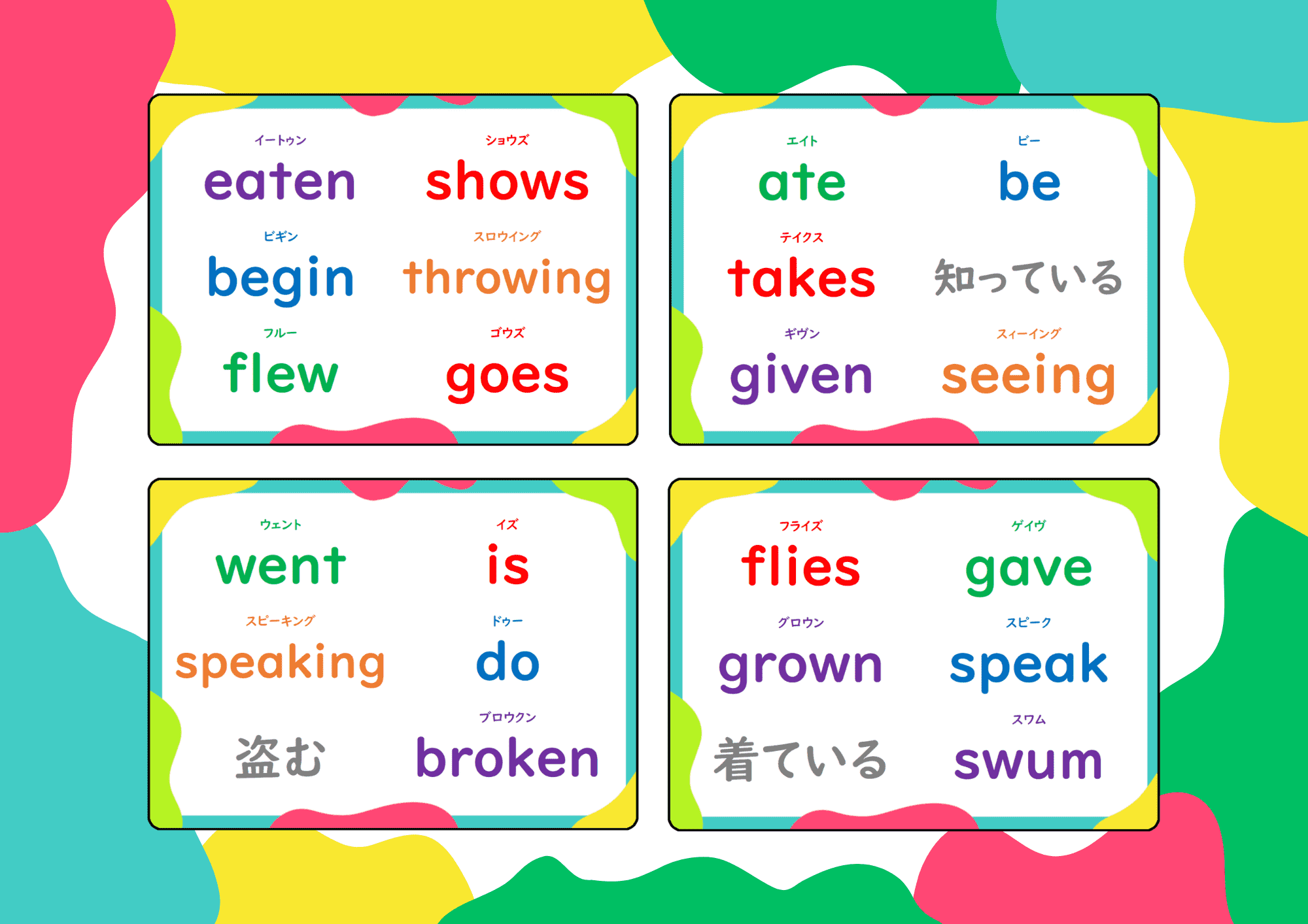 ゲームを通じて、英単語・単数形と複数形・動詞の活用などを学べます!